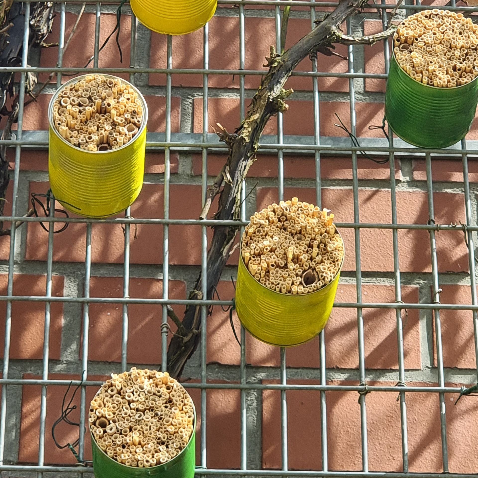 Zum Bestäuben aller Pflanzen benötigen wir Menschen die fleißige Hilfe der Wildbienen. Mehrere hundert verschiedene Arten gibt es bei uns. Sie leben als Einsiedlerbienen und versorgen ihren Nachwuchs in kleinen Höhlen, Löchern und Mauern- und Holzspalten. Viele Wildbienenarten sind leider selten geworden, da ihre Lebensräume fehlen oder zerstört wurden. Ohne Wildbienen kann es aber kein Obst und Gemüse geben. Daher haben wir geeignete Nisthilfen im Werkunterricht gebaut. Die Nisthilfen haben wir der Schule zum Abschied geschenkt, damit es im neuen Schulgarten unserer Grundschule so richtig summt und brummt.