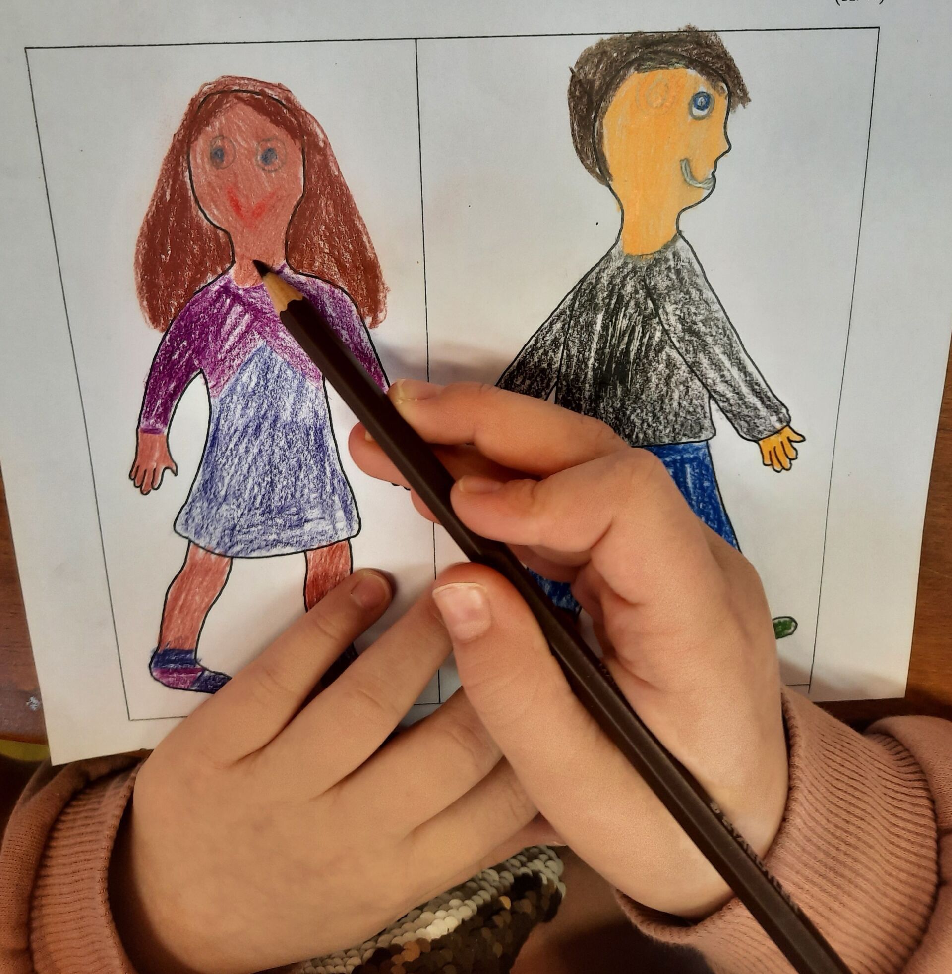 Damit wir diese Stereotype gemeinsam mit den Kindern durchbrechen können, haben wir jede Klasse mit einer großen Auswahl an verschiedenen Hautfarben-Buntstiften ausgestattet, die den Kindern beim Malen und Basteln jederzeit zur Verfügung stehen.